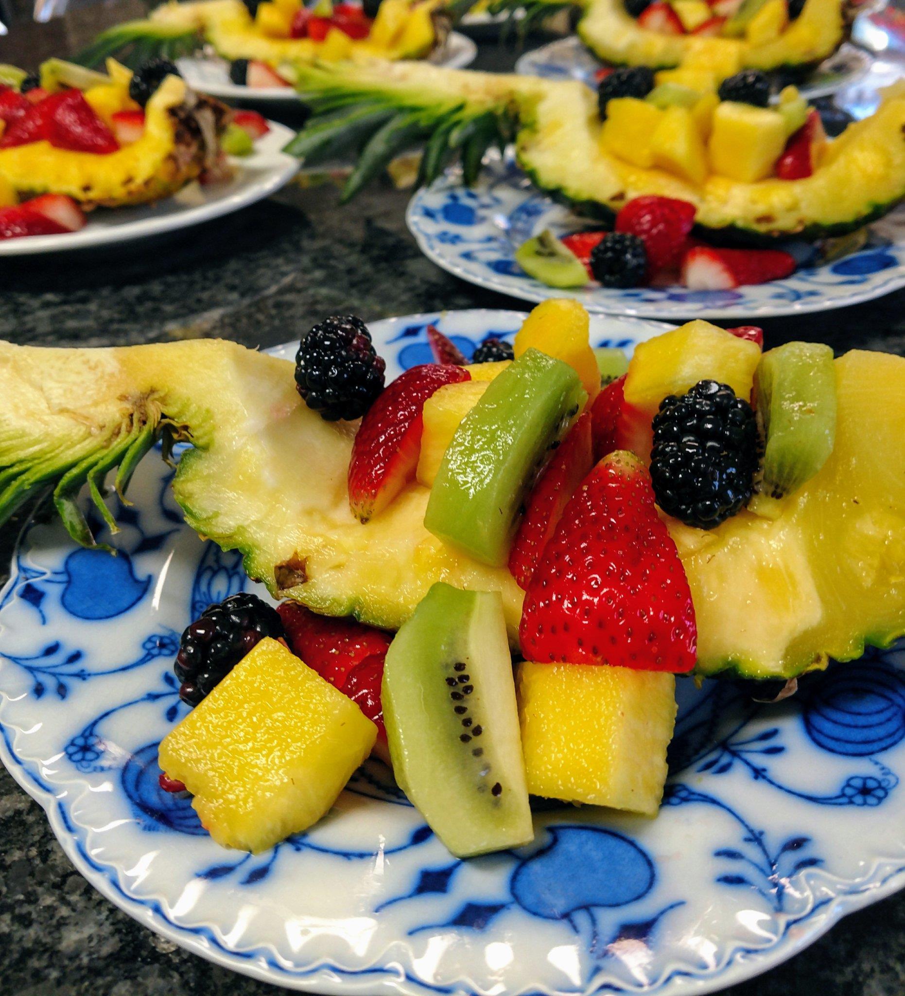 All of our food is prepared from scratch with fresh ingredients. Breakfast begins with juice, coffee, or tea – or a complimentary mimosa – along with a homemade breakfast treat, such as a warm, buttery Raspberry Cream Cheese Pastry Pinwheel, Banana Dark Chocolate scone, or Lamberson Signature Cinnamon Biscuit, served warm with butter. Our second course is always a seasonal fruit creation. Be prepared to indulge in Yogurt-Berry Parfaits, Pineapple Boats, or maybe fresh apples poached in cinnamon syrup. Our entrees may be a luscious Maple Cream and Bacon filled Brioche French Toast, Tri-Cheese and Sausage Pie with Tomato Bacon Gravy, or possibly Eggs Benedict with Creamy Hollandaise Sauce . Our entrees often have a side of sausage, ham, or bacon. We are proud to say that our breakfast meats are sourced locally, and we feel they are the best ever.